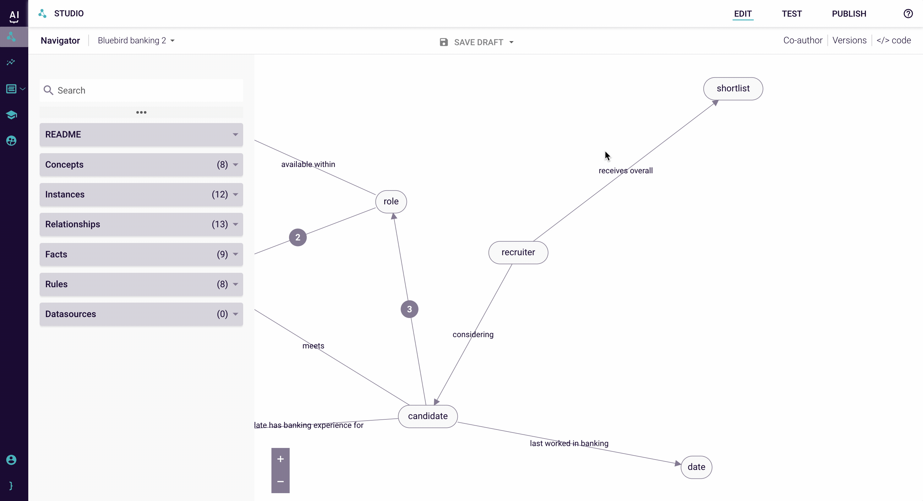 When editing your knowledge map in the Studio, you will **always** be working from the **draft version**. **This is the only version that can be edited.**
